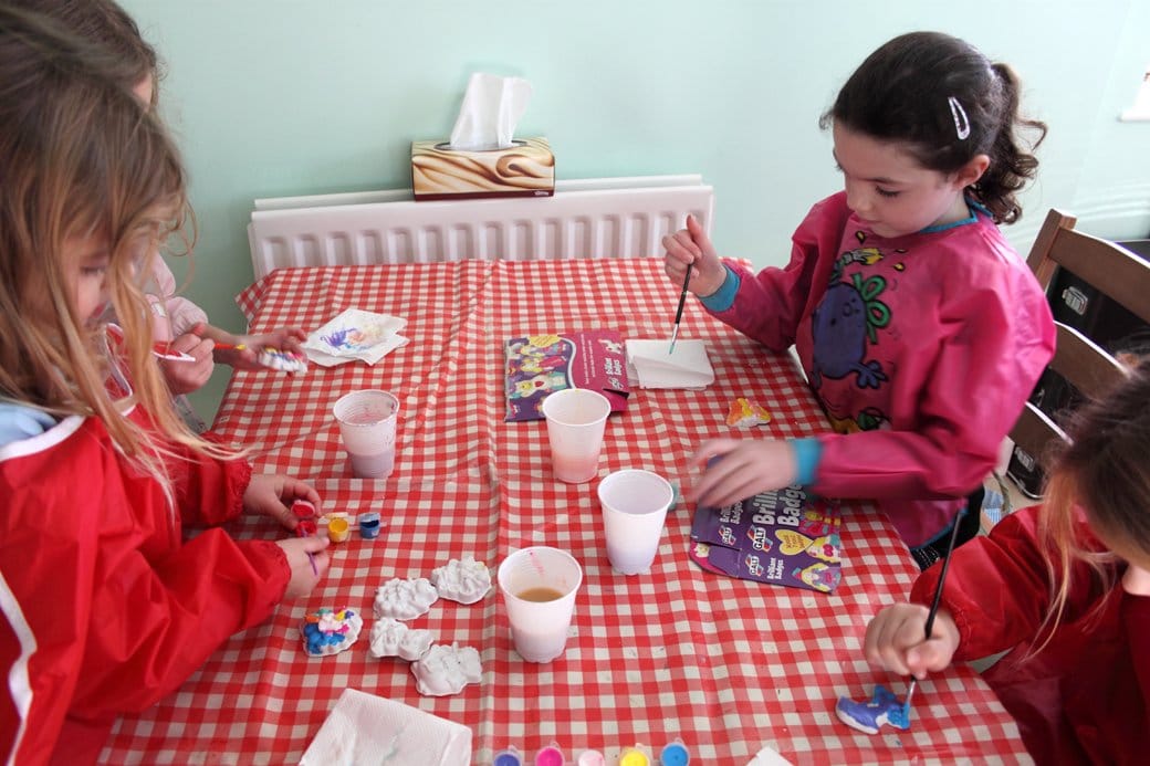 Alice was collected around 10.30am and within minutes of her leaving the door went and the cheeky face of, erm, Alice greeted me! Swiftly followed by the mischievous giggle of Elisa. Darren, bless him, was bleary-eyed after a night of little sleep with a poorly Elisa (who was now full of the joys of spring), so I jumped into the breach organising a painting session to keep them amused. It didn’t do a bad job for an hour or so… they painted plaster of Paris badges and lovely flower pictures (and my wall…) before giving up and heading off in search of something else to do. They found the dressing up box, and that kept them amused whilst Darren and I prepared lunch.